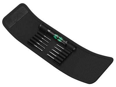The Wera Kraftform Kompakt 11 SB Electronics Micro Set is highly portable and versatile, contains the Kraftform Micro Bit Holder that is ideal for precision mechanical work. Fitted with a multi-component Kraftform- handle with an anti-roll feature and swivel cap. It is also suitable for the take-up of bits with a 4mm halfmoon drive (Wera series 9) and bits with a 4mm HIOS drive (Wera series 21). Supplied in a handy, compact pouch with the following: 3 x 44mm 851/9 C J Phillips Halfmoon Bits: PH00, PH0, PH1 2 x 4mm 840/9 C Hex-Plus Halfmoon Bits: 1.5mm, 2.0mm 3 x 44mm 800/9 C Slotted Halfmoon Bits: 1.5 x 0.23mm, 2.0 x 0.40mm, 3.0 x 0.50mm 2 x 44mm 867/9 C TORX- Halfmoon Bits: TX5, TX6 1 x 1013 Kraftform Micro Bitholding Screwdriver