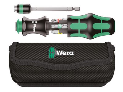 The Wera Kraftform Kompakt 20 Tool Finder has been specially developed for mobility, flexibility and versatility. The multi-component Kraftform handle has a non-roll feature and an integrated magazine for the storage of the bits. The profile and size of the bits are easy to recognise thanks to the Wera Tool Finder with its colour coding and clearly visible imprint. Suitable for bits with 1/4in hexagon head drive as per DIN ISO 1173-C 6.3 and E 6.3 (ISO 1173) and Wera connecting series 1 and 4. Supplied with: 6 x 25mm BiTorsion Extra Tough Screwdriver Bits: PH1, PH2, PZ1, PZ2, SL: 5.5mm & TX25. 1 x Rapidaptor Bit Holder 100mm. 1 x Velcro- Fastening Belt Loop Pouch.