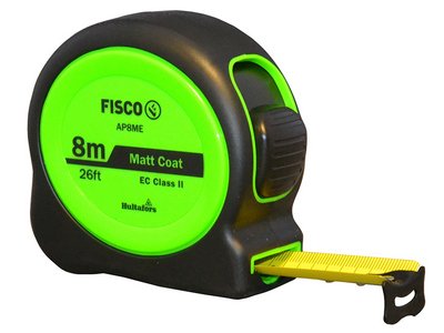 *** PRODUCT DISCONTINUED *** The Fisco AP8ME A1-Plus Tape Measure has the following specification: Blade Length: 8m/26ft Blade Width 25mm Colour: Hi-Vis Green