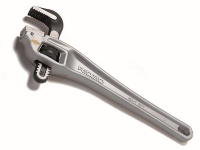 RIDGID Aluminium Offset Pipe Wrench Size: 450mm (18in). Capacity: 65mm (3.1/2in). Weight: 1.6kg.