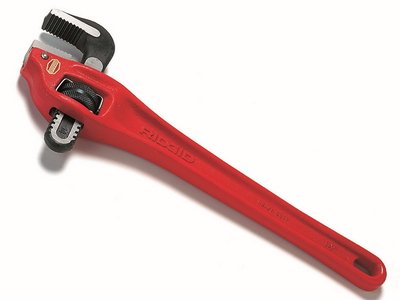RIDGID Heavy-Duty Offset Pipe Wrench Size: 450mm (18in). Capacity: 65mm (2 1/2in). Weight: 2.6kg.