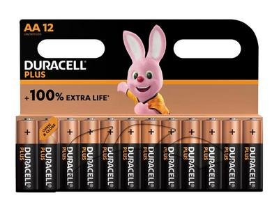 Pack of 12 Duracell AA Cell Plus Power +100% Batteries.