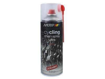 MoTip Cycling Chain Spray Ultra is a highly viscous lubricant with ceramic particles to treat chains and gear wheels of bikes. Its unique formula provides long-lasting lubricating properties and reduces the adhesion of dirt. With a very low friction factor and excellent adhesion. It is also resistant to weather influences and water-repellent.