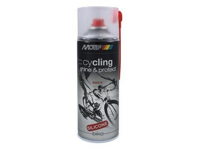 MoTip Cycling Shine & Protect is non-polishing and contains silicones. A user-friendly maintenance spray to clean, protect and obtain a lasting gloss. It also reduces the adhesion of dirt and protects against weather influences. Shine & protect is water-repellent and antistatic. Suitable for treating all lacquered and carbon bicycle parts.