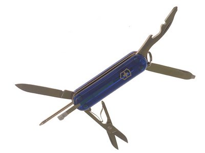A Victorinox Swiss Army Knife is a combination of solid hand tool and inventive creativity. A characteristic feature of the Victorinox Swiss Army Knife is its multi-functionality, which makes it indispensable for many of lifes situations. All Victorinox Swiss Army Knives are made from first class stainless steel and are guaranteed against any defects in material and workmanship. Manager Swiss Army Knife has a Blade, Scissors, Nail File with Screwdriver, Bottle Opener, Magnetic Phillips Screwdriver (0/1) and Wire Stripper, Key Ring, Tweezers, Toothpick and a Ballpoint Pen. Size: 58mm (2.1/4in) long. Victorinox Manager Swiss Army Knife 06365T2NP Colour: Translucent Blue. Size: 58mm (2.1/4in) long.