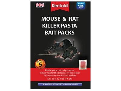 5 x Sachets of Rentokil Mouse & Rat Killer Pasta Bait. Kills up to 10 mice or 4 rats.