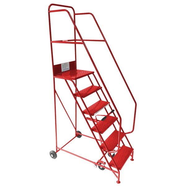 • Castor lock-down lever restricts tread access as a reminder to retract castors before climbing.