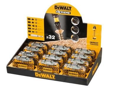 *** PRODUCT DISCONTINUED *** Dewalt Counter Top Display with 12 x Flex Torque Impact Bit Sets, 32 Piece The Dewalt Flex Torque Impact Bit Set is supplied in a robust small cassette for safe storage and easy accessibility to screwdriving accessories. It is impact ready, for use in impact drivers. The magnetic bit tip holder features a retractable collar to eject the screwdriver bit only when the user wants to remove it. Contains the following: 10 x 25mm Pozi Screwdriving Bits: PZ1(2), PZ2(5) & PZ3(3) 5 x 25mm Phillips Screwdriving Bits: PH1, PH2(3) & PH3 2 x 25mm Phillips Drywall Bits: PR2(2) 3 x 25mm Slotted Screwdriving Bits: SL6, SL8 & SL10 11 x 25mm TORX Screwdriving Bits: TX10(2), TX15(2), TX20(2), TX25(2), TX27, TX30 & TX40 1 x Magnetic Bit Tip Holder
