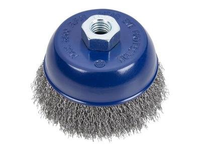 This BlueSpot Tools Steel Wire Cup Brush has the following specifications: Wire: 0.3mm. Diameter: 100mm (4in) / M14 x 2 Fitting. Max. Safe Speed: 8500 RPM.