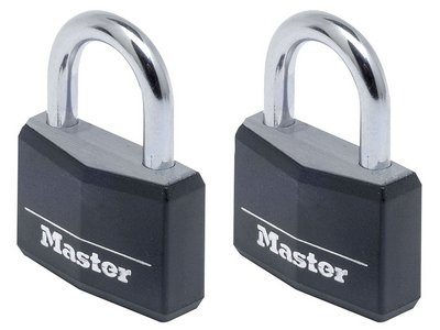 The Master Lock 9140EURTBLK has the following specifications: 2 x 40mm aluminum with black vinyl cover padlocks – 21mm hardened steel shackle, 6mm diameter – 4-pins – keyed alike