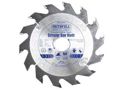 This Faithfull TCT Circular Saw Blade has the following specification: Application: Fast Rip. Blade Diameter: 128mm. Bore: 20mm. Teeth: 14. Bush: 16 & 13mm. Rake: POS.
