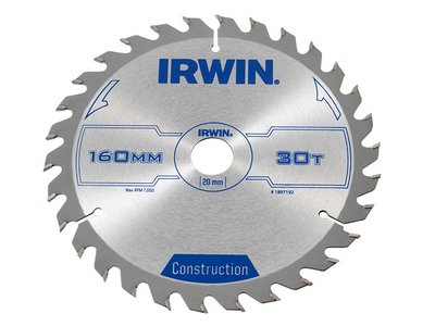 Irwin Construction Circular Saw Blade 160 x 20mm x 30T ATB (5706918971924) IRW1897192