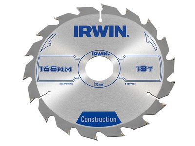 Irwin Construction Circular Saw Blade 165 x 30mm x 18T ATB (5706918971931) IRW1897193
