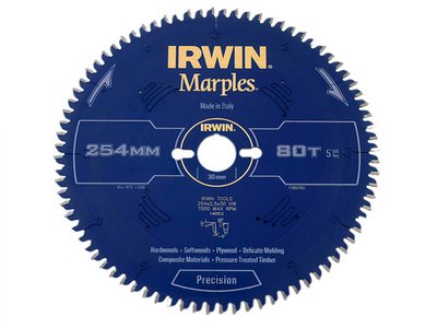 *** PRODUCT DISCONTINUED *** This Irwin Marples Mitre Circular Saw Blade has the following specifications: Blade Diameter: 254mm. Bore: 30mm. Teeth: 80. Kerf Thickness: 2.5mm. Tooth Config: HI-ATB/Neg. Machine: Mitre.
