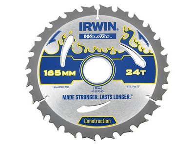 Irwin Weldtec Circular Saw Blade 165 x 30mm x 24T ATB (5706918973652) IRW1897365