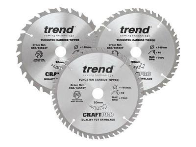 Trend CraftPro Cordless Saw Blade 165 x 20mm x 24T/40T/52T (Pack 3) (5027654062838) TRECSB1653PB