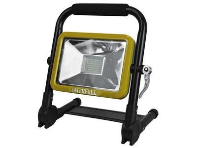 *** PRODUCT DISCONTINUED *** A new work light with an innovative fold flat design which offers the user the ideal storage solution for both around the home or in a vehicle. Featuring the latest 20W SMD LED which is highly energy efficient, this work light provides a bright glare free 1800 lumen light output and is cool to the touch. The Heavy-duty Lithium-ion battery is lightweight but powerful providing up to 7 hours of continuous light on one full charge, depending on the mode selected. Four output modes are provided 100%, 50%, 25% and flashing. The work light also offers the added advantage of a USB power outlet allowing the user to recharge many portable electronic devices such as MP3 players or mobile phones (a compatible lead with USB ‘A’ type plug that has been supplied with the device to be charged will be required). The Work Light has a ratcheting leg stand system that allows the lamp to be folded flat for storage and opened out for use, the stand can be set in one of the 4 pre-set positions. The lamp head can also be horizontally adjusted. Supplied complete with both a mains charger and a car charger unit. The lamp is water resistant to IP44 standard for use in wet or damp conditions. Ideal for many uses around the home, workshop, worksite or garage.