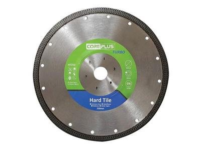 The CorePlus HT250 Hard Tile Turbo Diamond Blade has the following specification: Diameter: 250mm Bore: 22.23mm Segment Height: 10mm Segment Width: 1.6mm