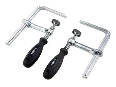 The Makita 194385-5 Plunge Saw Clamp Set has been designed for use with the Makita SP6000 Plunge Saw. These clamps are mainly used when using the saw in conjunction with a guide rail. They hold the guide rail/material securely in place.