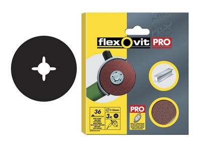 The tough and sharp high performance aluminium oxide, combined with dense semi-rigid backing gives this product extremely long life. It is ideal for working on metal using an angle grinder. Use with FLV56838 backing pad, sold separately. Pack of 3 Flexovit Aluminium Oxide Fibre Discs 125mm Fine 80G