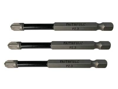 Faithfull Pozidriv Impact Screwdriver Bits PZ3 x 75mm (Pack 3) (5023969002323) FAISBPZ375IM