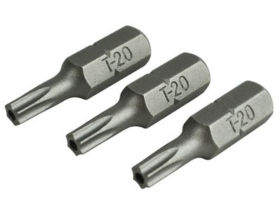 Pack of 3 Faithfull Security S2 Grade Steel Screwdriver Bits T20S x 25mm
