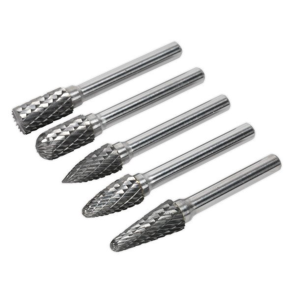 • 5pc Set of Ø10mm No. 6 cut (universal) Tungsten Carbide burrs.