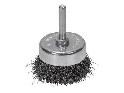 The FAIWBS50 Wire Cup Brush has the following specifications: Face Diameter: 50 mm. Shaft: 6 mm (1/4 inch). Wire: 0.3 mm crimped steel wire. Conforms to ISO 9001. and DIN EN1083-1 and 2.