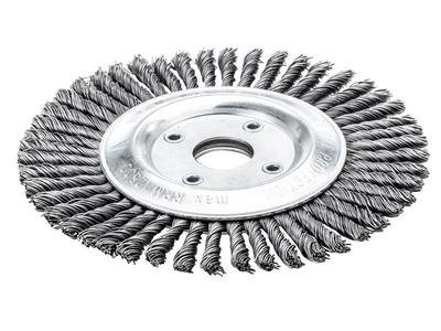 This Lessmann Pipeline Brush has the following specification: Wire: Steel Number of Knots: 40 Diameter: 125mm Width: 6mm Bore: 22.2mm Max. Speed: 15,000/bpm