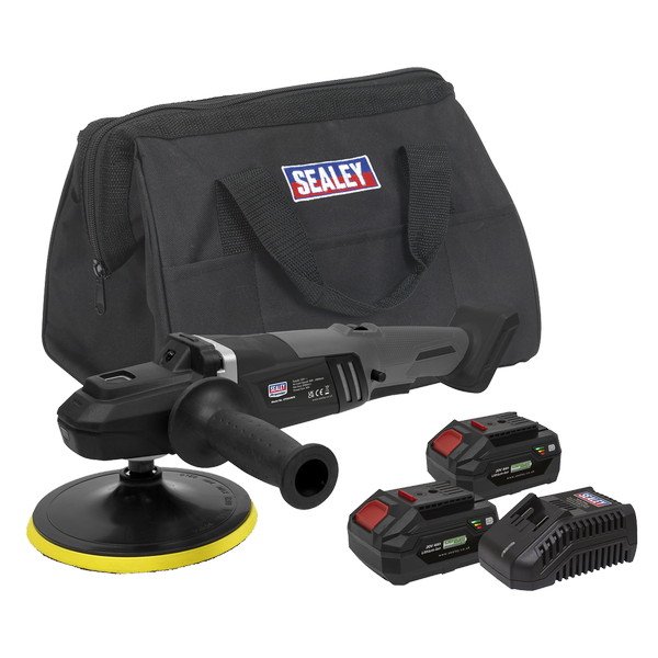 • Powerful cordless rotary polisher kit – 2 batteries.