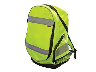 *** PRODUCT DISCONTINUED *** Scan Hi-Vis Yellow Backpack is a ideal for motorbikers, cyclists and schoolchildren. It is made from 100% polyester (PES) with a polyurethane coating for protection against foul weather. Its adjustable padded shoulder straps ensure comfort, and it also has a webbed carrying handle with rubber grip. The backpack is expandable to accommodate larger items and has numerous pockets for storage and better organisation, including: 2 zip side pockets with internal elasticated holding straps. Small internal pocket for MP3 player / i-pod- with rubber outlet for earphones. Large internal pocket with elasticated top. Specifications: Capacity: 23 Litres. PPE CAT-I.