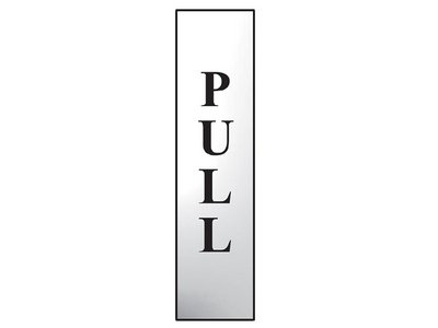 Polished chrome effect sign with black text/graphic. Printed using UV resistant inks. Please note this material is not recommended for exterior use. Size: 50 x 200mm.