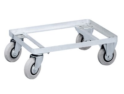 The Zarges W150 Dolly Trolley for transporting Eurobox containers. two fixed and two swivel action castors (each 125x40mm), roller bearings and rubber tyres. Low-level version.