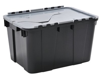 Curver 55 litre shatterproof crate in graphite colour with silver lid. With metal pin hinges for added strength. Ideal for the home, office and workshop. Dimensions (W x L x H): 555 x 390 x 330mm.