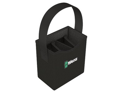 The Wera 2go 4 Tool Quiver includes a variably adjustable hook & loop fastener partition for a division into as many as five sections, allowing the user to customise the content of their set up whilst maintaining a neat and tidy arrangement. Made from plastic panels, covered with a fabric that is extremely resistant to cuts and punctures. Fitted with a large handle, meaning the quiver can be easily transported or hung up within the workplace. To the reverse there is a hook & loop fastener zone, meaning it can be docked with the Wera 2go 1 tool carrier and the Wera 2go 2 tool container.