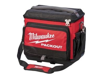 The Milwaukee Hand Tools PACKOUT (TM) Jobsite Cooler is made from 1680D ballistic nylon and is fitted with rugged metal zippers, ideal for tough jobsite conditions. The impact-resistant polymer base helps to protect the contents from water, dirt and tear. The cooler utilises double insulation and a food-grade, leakproof liner to keep ice cold for 24 hours without leaking. It has a large 20L volume storage capacity with a separate dry compartment, ideal for storing food. Other features include: a tape measure clip with a bottle opener and a tech pocket for storing tablets and electronic devices. Multiple carry options: cushioned shoulder strap and top handle. Part of the PACKOUT (TM) modular storage system.