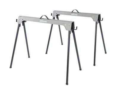 The Evolution Metal Folding Sawhorse Stand is ideal for setting up a sturdy and reliable worktop. Each sawhorse boasts an incredible supporting weight of up to 500kg, giving you peace of mind when cutting. Whether its logs or large sheet materials, simply space the horses accordingly to provide a flat platform every time. Go from cut to carry instantly with the foldable frame and integrated carry handles. This handy saw accessory is ideal for any DIY project. A perfect addition to your workshop arsenal. Supplied as a twin pack.