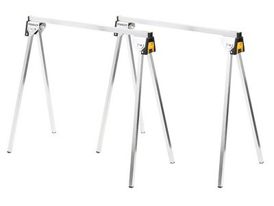 The Stanley Tools Essential Metal Sawhorse has an all-metal construction that allows use with clamps. They are easy to open and close, they fold down into a compact size and both of the sawhorses can also be clipped together, making them extremely easy to transport. Fitted with rubber feet that create friction on the surface during cutting, for added security and stability. Supplied as a Twin Pack. Specification: Max. Load: 340kg per pair