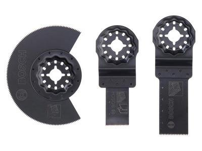 The Bosch Starlock Starter Set for general wood and metal applications. The Starlock mount provides optimum power transfer and convenient blade change within 3 seconds. Contains: 1 x AIZ 20 AB BIM Plunge-cutting Metal Blade 1 x AIZ 24 EC HCS Plunge-cutting Wood Blade 1 x ACZ 85 EC HSC Segment Saw Wood Blade