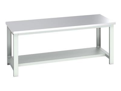 Bott Cubio Bench with Half Shelf, Stainless Steel Clad Top 2000 x 900mm (5039350219577) BOT41004176