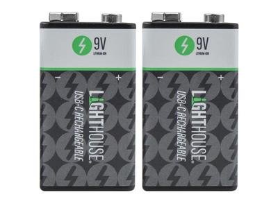 Pack of 2 Lighthouse 9V USB-C Rechargeable Li-ion Batteries The Lighthouse 9V USB-C Recharge Battery Li-ion pack is designed to provide reliable and efficient power for a variety of devices. This pack includes two 9V batteries, each capable of up to 1200 charge cycles, making them a cost-effective and eco-friendly alternative to disposable batteries. The 400mAh Li-Ion battery cell ensures extended usage times between charges, keeping your devices powered for longer. The included USB-A to USB-C charger makes recharging simple and convenient, while the charging indicator allows you to easily monitor the charging status. With a quick 2.5-hour charge time, these batteries are ready to use in no time. The L/HBATUSB9V 9v USB-C Recharge Battery Li-Ion pack is the perfect choice for anyone looking to save money, reduce waste, and enjoy reliable power for their devices. By investing in these rechargeable batteries, you contribute to a more sustainable future while enjoying the convenience and performance they offer.