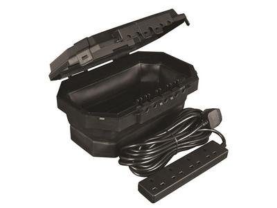 The Masterplug Collapsible Electrical Connection Box comes with a 4 socket 13A extension lead. Its collapsible design and sturdy construction make it easy to store and durable for outdoor conditions. With an IP54 rating and quad layers of sealing at cable entry and exit points, it provides a watertight seal. The adjustable depth allows for compatibility with various devices, including in-line transformer plugs and timers. Additionally, it features tool-free cable clamps, a self-locking lid, and a hook & loop fastener strip to secure the extension lead.