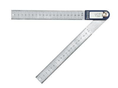1 x Moore & Wright Digital Angle Rule 200mm. Specifications: Large LCD display Easy-to-use and strong lock device Inside and outside angle measuring Functions: Hold function, on/off, zero-setting Reversible reading Stainless steel rule blades with mm scale