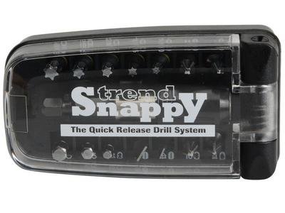 *DISCONTINUED PRODUCT* This Trend Snappy Screwdriver Bit Set covers a wide range of screwdriving applications and screw head types. Ideal for the workshop or toolkit, each bit is made from high grade hardened tool steel with a reduced shank and torsion zone area to reduce strain on the bit as it drives. This minimising breakage under heavy load and reduces cam out for superior torque transmission. Colour coded rings on each bit shank ensures correct, quick and easy bit selection every time. This set is supplied in a flip lid storage container with belt clip, keeping everything close to hand as you work. Contains: 2 x 25mm Phillips Bits (Red Ring): PH1, PH2. 2 x 25mm Pozi Bits (Blue Ring): PZ1, PZ2. 5 x 25mm TORX Bits (Yellow Ring): T10, T15, T20, T25, T30. 2 x 25mm Slotted Bits (Red/Orange Ring): 4 x 0.6mm, 6 x 0.9mm. 3 x 25mm Hex Bits (Yellow/Orange Ring): 3, 4, 5mm A/F. 1 x Magnetic Bit Holder.