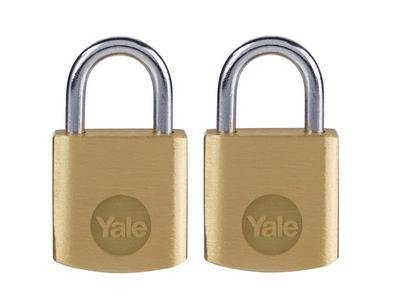 Pack of 2 Yale Locks Brass Padlocks 20mm. Each padlock has a steel shackle and 4 pin cylinder with single locking feature. Tested up to 48 hours for corrosion resistance to ensure protection against different weather conditions. Specifications: Body Width: 21.4mm. Body Height: 21.8mm. Body Depth: 10mm. Shackle Diameter: 3.3mm. Shackle Height: 23.5mm. Shackle Width: 10.8mm.