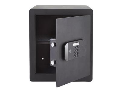 The Yale Premium Office Safe is designed to protect cash to the value of GBP1,000 and valuables of GBP10,000. It has 22mm electronically motorised locking bolts, armoured walls and a laser cut door for minimum gap with a reinforced hinge and mounted automatic opening spring. The shelf can be removed if desired. The digital keypad has a blue backlight LCD display, with low battery warning. The code is resettable to a 3 to 8 digit usercode with 100,000+ possible combinations. The display code also has an on/off function. For added convenience the safe is also fitted with a 6 lever double bitted manual override lock with two override keys supplied. Specifications: External Size (HxWxD): 400 x 350 x 340mm. Internal Size (HxWxD): 392 x 345 x 285mm. Weight: 17kg.