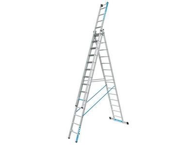 This Zarges Skymaster Plus X Combination Ladder has the following specification: Number of Rungs: 3 x 14. Ladder Length: 3-Part Single Ladder: 9.73m. 2-Part Single Ladder/Stepladder with Push-On Section: 6.94m. Overall Length, Retracted: 4.14m. Stile Depth: 98mm. Vertical Distance between each Rung/Tread: 265mm. Transport Dimensions (approx.): 4,145 x 500 x 245mm. Weight: 36.6kg. Delivered Direct to Business, Site or Home; please note: a carriage surcharge may apply dependent upon the delivery address, contact us for further details.